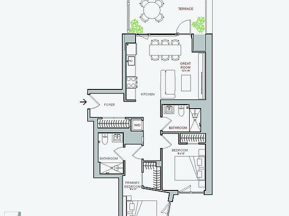 Residence 505 is a refined two-bedroom, two-bathroom home that balances contemporary design with the luxury of private outdoor living. Set on the 5th floor, this residence is anchored by a light-filled great room that extends seamlessly onto a spacious 221 SF private terracea rare retreat ideal for open-air dining, quiet relaxation, or entertaining beneath the city sky. This outdoor space transforms daily life, creating a natural extension of the interior and offering a sanctuary of calm in the heart of Brooklyn.