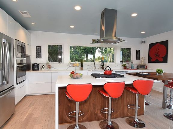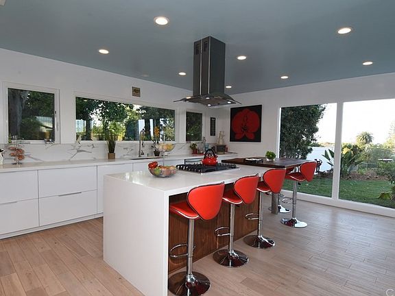 This stunning mid-century modern masterpiece was completely remodeled in 2016-17! Over $300K spent on remodeling and a smart addition: large gorgeous gourmet kitchen with island and custom walnut eat-in counter, 3 remodeled bathrooms, elegant new hardwood flooring, Milgard dual pane vinyl windows + 4 patio sliders, electrical system with LED lighting, patio, interior/exterior paint, and much more! Home sits on a 20,000 Sqft lot perched above a private lane off Harbor Sight, offering the most tranquil and private setting that also has City lights views- it's truly a retreat! Zoned for horses. You'll love the open flowing floor plan..it's perfect for indoor/outdoor living! The living room and kitchen both have 10' double sliding doors that open to a private patio and huge lush grassy yard! The living room and family room both have cathedral open-beam ceilings and each have a fireplace with custom lighting accents and built-in TV nooks. There's a huge open formal dining room with a classy stacked stone accent wall, built-in wine bar, and patio slider leading out to huge side patio! Master suite is wonderful, with vaulted ceilings, patio slider to the yard, and a beautiful new master bath with European style walk-in shower, dual sinks, make-up vanity, + awesome walk-in closet with organizers! Terrific laundry/mud room has tons of storage cabinets, utility sink, and counter space. Rear yard has all new sod, sprinklers, + the best chicken coop ever! Great on/off the hill location!