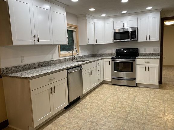 NEW KITCHEN and PRICE REDUCED 20k for immediate Sale. Large Ranch in Excellent location Features 3 large bedrooms including Primary suite with private bath with walk in shower. Fireplace living room open to dining room and kitchen with breakfeast bar. Home has vinyl siding. New Oil tank. Most windows are 1.5 year old Andersen windows including the large picture window. 3 zone heat 1 zone cooling, as well as whole house fan. Home is an open concept. Hardwood floors throughout most of Home. One of the additional bedrooms have double closets. This house has plenty of storage. Large sun filled mudroom separating the one car attached garage to the kitchen, as well as leading out to a large composite deck. Smaller deck and ramp off the master bedroom. Hard Wood Floors Refinished April 2020, First floor Laundry. Please Submit any offers by 5 PM June 30th 2020 thank you