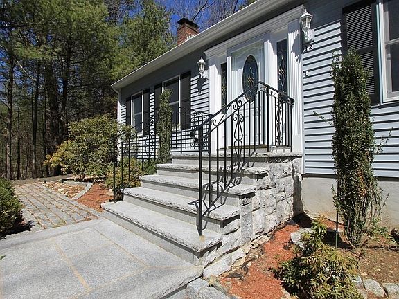 Perfectly cared for, expanded & spacious, 3 bedroom cape located on a private lot with great access to Rte. 95, in the wonderful town of Boxford. Expansive, open concept sunlit first floor, large fireplaced family room, formal dining room, eat in kitchen with new counter tops, & glorious sunroom with pellet stove overlooking the private back yard & patios. Front to back fireplaced living room with pellet insert, brand new tastefully remodeled first floor bath with sand colored tiles & matching granite. 3 bedrooms upstairs, remodeled tiled bath with granite & whirlpool tub, large remodeled master with large dressing room/study, plenty of closet space & skylights. Beautiful hardwood, gorgeous tile, and quality throughout the entire home. New Anderson 400 windows, central air, no maintenance exterior, with vinyl & plastic wood trim, new granite steps, new roof, newly paved driveway, whole house fan, central vac, sprinkler system, 2 sheds, 2 patios, partially fin basement, turn key!