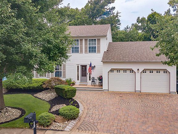This meticulous 4 bedroom, 2 1/2 bath colonial with 2 car garage and full paver driveway is located at the end of a cul-de-sac street and features: Beveled glass front doors, spacious upgraded eat-in kitchen with white cabinetry, SS appliances, large pantry, and french doors opening to family room with stone fireplace. Living room and large dining room with decorative moldings. Upgraded bathrooms with granite. Hardwood floors throughout home and recessed lighting. Full finished basement. Outside enjoy your custom Brazilian walnut deck overlooking beautiful private fenced yard backing to woods, stamped concrete patio, shed and sprinkler system. This home has it all!!
