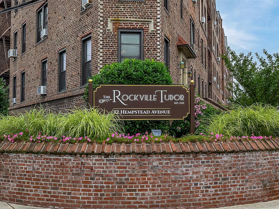 Unique, charming 1 bedroom, 1 bath home with a beautiful brick private entrance in Rockville Tudor. Welcome to 12 Hempstead Avenue, where elegance meets you at the front door with a brick exterior, beautiful entrance and a serene courtyard. The first-floor unit has high ceilings, a private outdoor entrance, living room, kitchen, new primary bathroom, and plenty of closets. The building has a gym, storage room, laundry room and a bike room. Conveniently located close to the RVC LIRR Station, shops, and restaurants. Whether you are starting out or downsizing, this classy co-op is ready for its next owner!