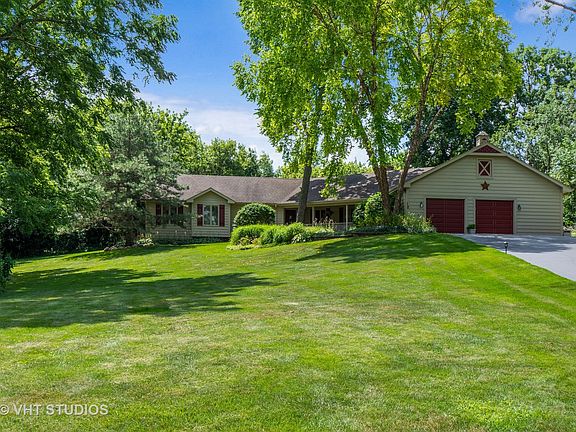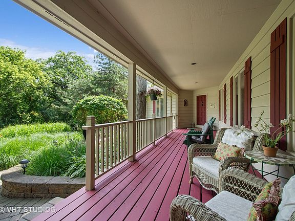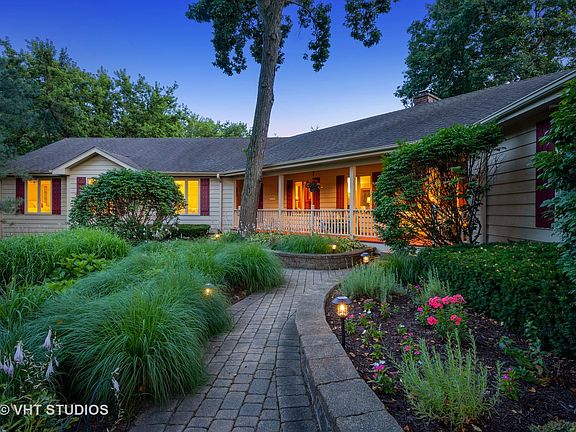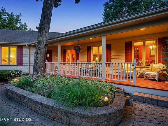 Peaceful and Quiet in Woodland Ests, This lovely Ranch sits high on a hill, and is warm, light-filled and inviting inside. Located in award winning District 95. Kitchen has SS appliances, Quartz counter tops, tons of cabinet space, hardwood floors. The Family Room has a vaulted/beamed ceiling and a floor to ceiling brick fireplace with a brick raised hearth and built-in wood storage. The backside of the FP brick is exposed in the Kitchen and Dining Rm areas. Recessed lighting throughout. The LL is ideal for work, play and storage. Two bedrooms have J&J bath w/sep vanities. There are 4 decks, (3 are trex) accessed via 4 separate sliding glass doors; also a screen porch and a 38'x9' covered front porch. Relaxing or entertaining is easy at the salt water, in ground, heated pool complete with built-in gas grill, refrigerator, and plenty of storage. Mature trees and perennial garden beds lend privacy and are low maintenance. Close to shopping, schools, YMCA and parks. Agent Owned.