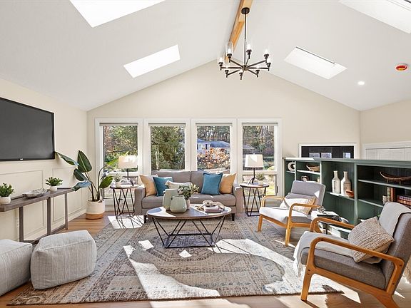 Rates are down! Why wait for the spring onslaught of buyers when you can start the new year in this newly renovated, sun-filled contemporary home. Set in a tranquil neighborhood on a level lot, this home boasts new HVAC systems, windows, doors, flooring, fireplace, septic system, kitchen, baths and more! Highlights include a main LR with vaulted, beamed ceiling, skylights & custom bookshelves, and large picture windows for maximum sunlight. The dining room includes a cozy sitting area with sleek fireplace while the renovated kitchen is adorned with lush green tile, waterfall quartz counters, a gas stove, peninsula island & a dining area that leads to an oversized deck and screened porch beyond, perfect for entertaining a crowd or quiet enjoyment. The lower level is complete with a laundry/mudroom, a home office, and your own indoor sauna! 2 additional rooms are ideal for media room, lounging, play, or exercise. Only .25 mile to the New MA Central Bike Trail, nearby dining & shopping!