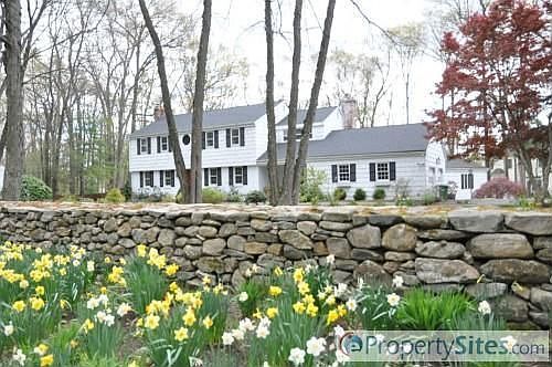 See more info: http://12hurdlefence.ePropertySites.com. 12 Hurdle Fence Drive is a sanctuary in the heart of Avon. The warm, inviting center hall Colonial sits proudly on a beautiful landscaped acre bordered at the street by a long stone wall with a picket gate. This highly desirable neighborhood location is very convenient to all of Avon's fine shopping and dining. The property is professionally landscaped with many flowering bushes and perennials. An exceptionally large bluestone patio (72' x 13') runs the entire front length of the home and another large marble patio borders the heated in-ground pool at the rear. The welcoming Entry Foyer features oak hardwood floors and opens to both the Dining Room and Living Room through beveled French doors. The sun-filled Formal Living Room measures 23' x 15' and runs front to back. It has an entire long wall of floor to ceiling bookcases with a very nice wood burning fireplace in the center. The oak floors, crown molding and a large picture window add to the classic charm of this home. The Formal Dining Room (14'2"x 12'7") is striking with deep plum walls, chair rail and wide crown molding. The Kitchen is the heart of the home, measuring 28'4" x 15' including a large eating area with wood burning stove. The updated cabinets are a French country style knotty pine in a honey tone with Corian counters and stainless steel appliances. A small center island in granite will convey. The long wood counter with additional cabinets on the front wall makes this space perfect for informal entertaining. At the entry to the Kitchen from the Living Room is a very conveniently located Half Bath/Laundry Room. Just off the Kitchen, through French sliders, the drama unfolds as you step down to the most amazing Family Room addition. Measuring nearly 1000 square feet, this area features a beautiful natural stone floor in warm tones, a floor-to-ceiling stone wall with enormous raised hearth fireplace and propane fueled Hibachi and a bar area behi