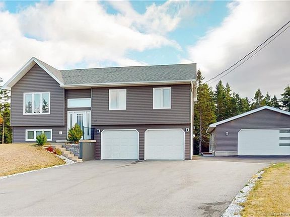 Welcome to 12 Hutson, a beautiful split-entry home in French Village, a community within Rothesay, NB. Built in 2015, this property sits on a private 1.63-acre lot in a quiet cul-de-sac, offering country charm with modern convenience just minutes from town. Inside, the open-concept layout is bright and welcoming, with a seamless flow between the living, dining, and kitchen areas. The kitchen features a nice sized island, stainless steel appliances and opens to a large deck overlooking tranquil green space—perfect for morning coffee or evening BBQs. A heat pump ensures efficient year-round comfort. Upstairs, three spacious bedrooms feature hardwood and ceramic flooring, while the lower level offers a cozy family room, laundry and another full bath. Along with a built-in fully finished double garage with expoxy floors, the property also includes a 30x36 triple garage with an 8x16 garage door, fully finished with a back bonus room ideal for a gym, workshop, or studio. Outside, enjoy a large storage shed, a triple paved driveway, and oodles of yard for playtime. This quiet court is filled with families and kids, making this a warm, welcoming place to put down roots. This location gives quick access to the highway and it is only a short drive to the centre of Rothesay and all the services.