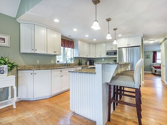 - Kit Dscrp: Flooring - Hardwood, Countertops - Stone/Granite/Solid, Kitchen Island, Stainless Steel Appliances, Open Floor Plan, Recessed Lighting, Exterior Access, Beadboard