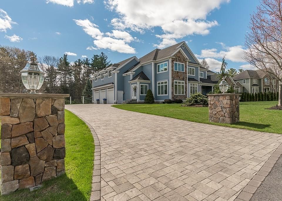 Luxuriously appointed contemporary colonial, exceptional details throughout create a seamless blend of luxury & elegance. Sunlight pours into the Living Room thru a wall of windows and soaring 20' vaulted ceiling. Spacious Chefs kitchen offers superior appliances, cherry cabinetry, and dining area with a 14' ceiling overlooking manicured private back yard, heated pool & waterfall. Sumptuous master suite offers both custom walk in & cedar closets and a generous full bath with 14' ceiling, tiled shower, jacuzzi & radiant heat. Recently updated 2nd floor full bath has gorgeous porcelain tiles on both wall & floor, custom shower and a Robern sliding glass vanity. Two additional beds & 2nd master complete the 2nd fl. Partially finished expansive lower level has interior access. Striking Blue Stone driveway, 400 amp elect, 3 car garage. Located in Essex Pond Estates, one of Middleton's premier neighborhoods and within easy access to major highways leading to Boston.
