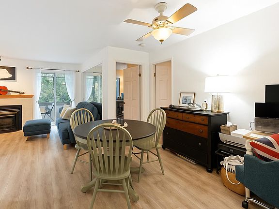 Welcome to Dockside at Westminster Quay! This spacious 2-bedroom, 2-bath home offers a bright, open layout with bedrooms on opposite sides for privacy. The kitchen is filled with natural light, featuring multiple windows, plenty of cabinets, and direct access to the covered patio—perfect for morning coffee, entertaining, or BBQs. The living room is anchored by a cozy gas fireplace, while in-suite laundry and an oversized storage room add convenience. Heat and gas are included in the strata fees. The building has been well maintained with exterior remediation completed in 2015 and offers great amenities including a clubhouse, fitness area, sauna, and rooftop deck. Fantastic location just steps to the SkyTrain, Safeway, River Market, restaurants, and the scenic boardwalk. Pets welcome!