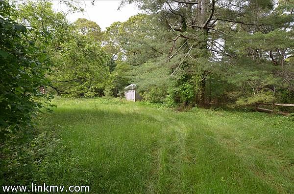 Beautiful building site located in a quiet residential/rural location features a serene and private setting that includes a shed structure on the property.