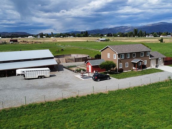 Large entry with automatic security gate,custom built 5 bed/3 full bath 2,464 sq ft home,outer walls are built with Structural Insulated Panels (SIP),2-car attached garage on 8.13 irrigated acres.Main floor features Brazilian Cherry hardwood floors, hardwood doors, gas fireplace, family room, full bath,bedroom /office.Upstairs has 4 bedrooms, two full baths, including the Master Suite with vaulted ceilings,soaker tub,granite counter,double sinks,walk in shower. New exterior paint,seamless gutters,automatic sprinklers, carport/basketball court,6 ft privacy fence surrounding deck with firepit,fenced raised-bed garden.Pasture,newly seeded alfalfa field,wheel line,60X60 5 stall barn,12X28 lean-to,60' round pen,10'X16 shed. All offers considered