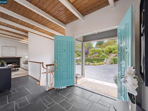 Perched in the rolling hills of Orinda in the highly regarded Del Rey neighborhood, this stunning 4-bedroom, 3-bath Mid-Century Modern home captures the essence of California living with breathtaking views, clean architectural lines, and a seamless connection to nature. Enter an open-concept layout flooded with natural light, floor-to-ceiling windows, vaulted wood-beam ceilings, and polished stone floors. The living and dining areas open onto a covered deck, offering a front-row seat to Orinda’s serene hillsides and glowing sunsets. The kitchen comes with stone countertops, extensive cabinetry and stainless steel appliances. The primary suite has an ensuite bath and access to the deck. Three additional bedrooms offer flexibility for guests, or home office needs. The lower level has a second living area with a 3rd bath. The home includes multiple outdoor living areas ideal for dining, lounging, or stargazing. More features include mature, drought-tolerant landscaping, owned solar with a carport for two with a Tesla charger and Tesla Power Wall. Top-rated Orinda schools and just minutes to BART, hiking trails, and downtown. A rare opportunity to own a timeless architectural gem with unmatched views and privacy — come experience the beauty of Orinda in classic mid-century style.