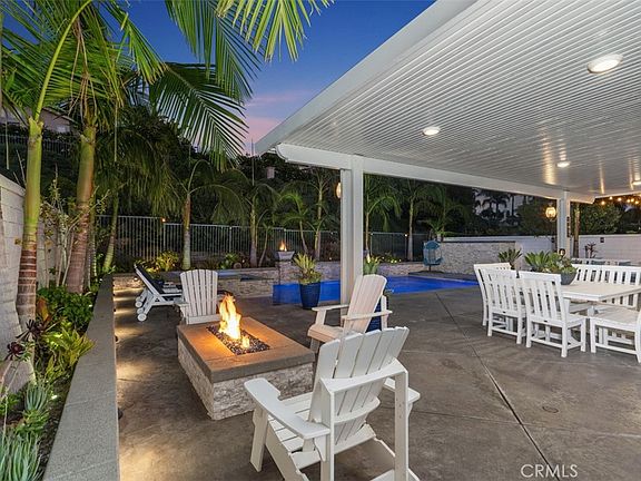 The expansive tropical backyard is a SHOWSTOPPER! Enjoy a custom saltwater pool and spa & stunning features creating an inviting atmosphere. The large covered patio is perfect for intimate dinners & lively gatherings, while the outdoor kitchen with built-in BBQ, sink, beverage refrigerator, & bar ensures effortless hosting. Relax by the fire pit or in the thoughtfully designed conversation area.