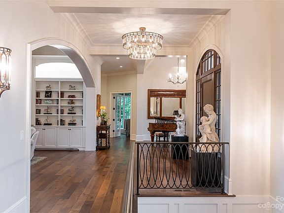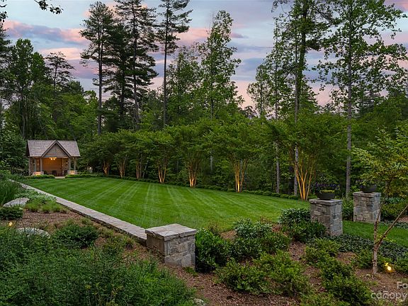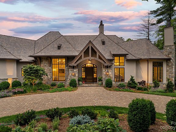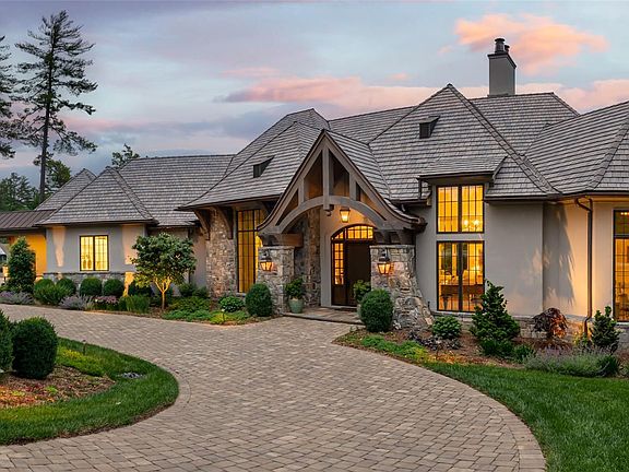 This prestigious estate, nestled in a tranquil woodland setting, stands as an emblem of refined grandeur in the Ramble Biltmore Forest. The grand entrance leads you into the foyer with soaring ceilings for a grand welcome. Explore further to find an elegant living room with a stately cast stone fireplace, offering a balance of intimacy and grand scale. Folding doors open the screened back porch with a see thru fireplace, dining, grill station and sitting area. The gourmet kitchen has top of the line appliances,double islands and a separate prep kitchen. A sumptuous primary suite featuring his&hers closets, a walk-in shower, dual vanities, and a soaking tub,creating a spa-like retreat. A glass elevator takes you to the lower level that caters to your every need with 3-ensuite bedrooms, wet-bar, family room and storage. Outside, manicured English gardens await with a pavilion,storage and half bath. 4-car garages, above sits a guest suite with laundry, kitchenette, bedroom and full bath.
