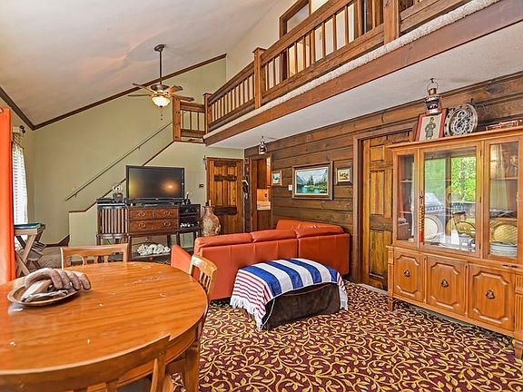 - Liv Dscrp: Flooring - Wall To Wall Carpet, Exterior Access, Main Level, Deck - Exterior, Slider, Ceiling Fan(s), Wood / Coal / Pellet Stove, Ceiling - Vaulted