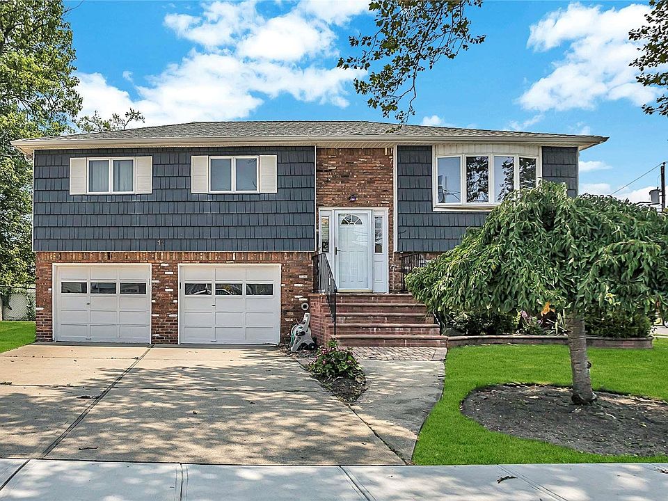 Updated High Ranch on a beautiful and quiet cul de sac block. Features 3 Bedrooms, 2 full baths, 2 car garage. Central Air condition, Roof only 5 years old, brand-new sidewalk around the house, updated heating and air conditioner systems. Lower level with a outside entrance. Close to major highways,LIRR, Parks, Shopping, schools, and Nutical mile.Move in Condition., Additional information: Appearance:Excellent,Separate Hotwater Heater:Y