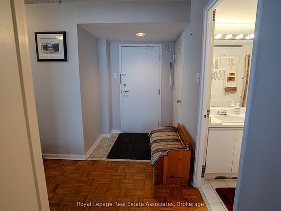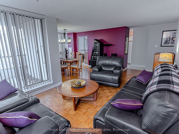Welcome to 1112-12 Laurelcrest Street, a stunning 2-bedroom, 2-bathroom corner unit condo that boasts a rare 3 parking spaces 2 underground and 1 surface! This unit features one of the buildings largest floor plans and comes with a spacious private locker a rare advantage given the limited and highly sought-after availability.The living and dining areas showcase classic hardwood parquet flooring, while both bedrooms are finished with plush carpeting for comfort. The second bedroom includes a custom Murphy bed, offering style and flexibility for guests or a home office setup. Large windows with vertical blinds fill the home with natural light, and from the living room you can step onto your private balcony to enjoy southeastern views perfect for morning coffee or relaxing evenings.This well-maintained building offers an impressive range of amenities: an outdoor inground pool, tennis court, gym, billiards room, media room, meeting/party room, card room/library, sauna, and hot tub. The manicured grounds and 24-hour gated security provide both beauty and peace of mind.Ideally located just minutes from dining, shopping, transit, parks, and places of worship, this home blends comfort, convenience, and community.EXTRAS: Parking spots: Level A #26 and #114. Surface spot: #18.