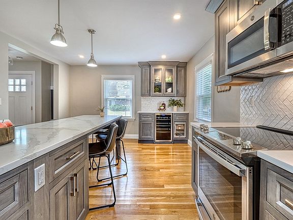 - Features: Flooring - Hardwood, Dining Area, Pantry, Countertops - Stone/Granite/Solid, Kitchen Island, Open Floorplan, Recessed Lighting, Remodeled, Stainless Steel Appliances, Wine Chiller, Lighting - Pendant