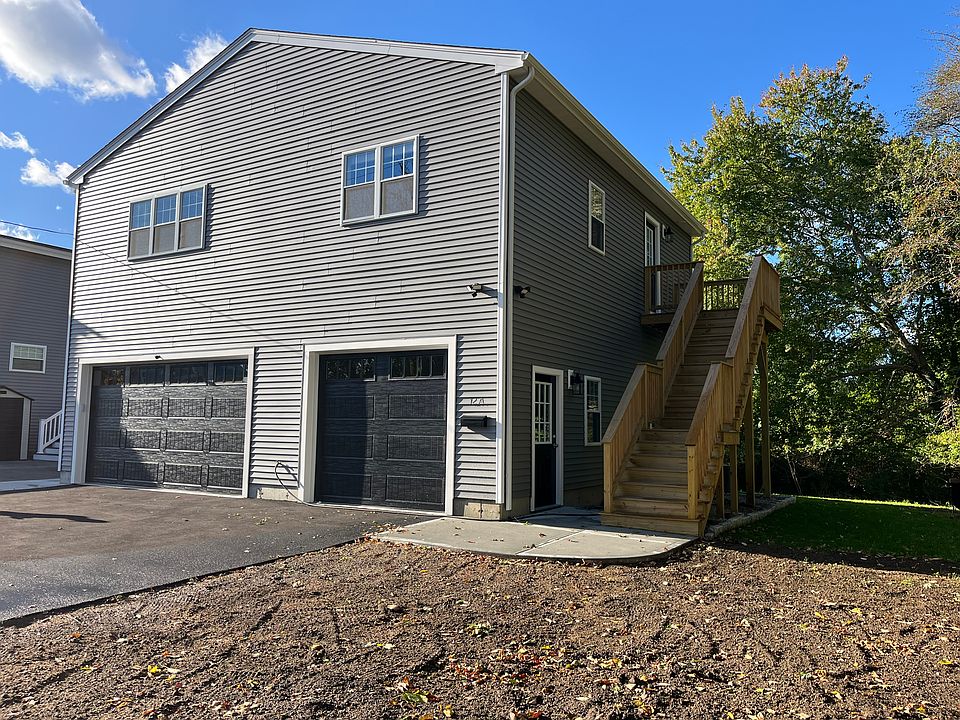 This lovely home is tucked away at the end of a quiet dead end street. Home features a spacious open concept living room and kitchen. Fully functional kitchen with an island, quartz countertops and stainless-steel GE appliances (Gas stove). Two good size bedrooms with tons of natural light. One room has a walk in closest. Two full size bathrooms, one with double sink and shower. Luxury vinyl flooring and central a/c throughout. Washer and dryer hookups in unit and garage. Private outdoor yard space on both sides of the house with an outdoor deck overlooking the property. Walk path just steps away from your door. 2 car parking with 1 garage spot.