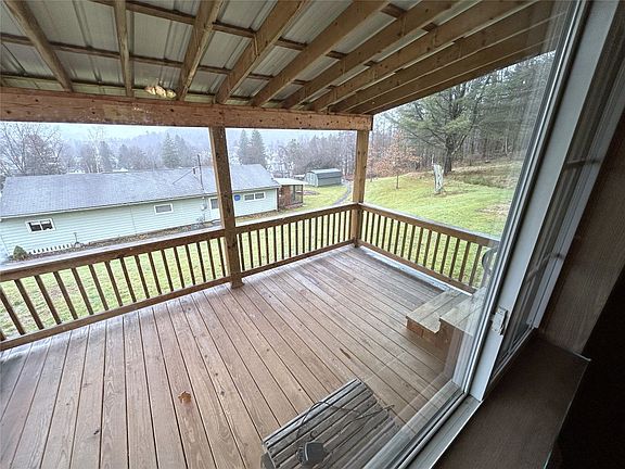 A comfortable modular home with a spectacular hilltop view of the town. This property is nestled on a quiet dead end road in the village of Deposit NY. It features an open floor plan, an eat-in kitchen with stainless appliances, spacious bedrooms, a primary bedroom en-suite with a large walk-in closet, private bathroom including a soaking tub, central air conditioning, and a covered front porch. Bosch washer and dryer. A full walk-up attic primed to be made into more living space. The new backdeck is ready for your summertime barbecue! 10 x 8 shed. Newer blacktop doublewide driveway. Public utilities. Enjoy the tranquility and convenience of rural living with easy access to local ammenities and the highway. Clean as a whistle! Easy maintenance. Schedule your appointment today.