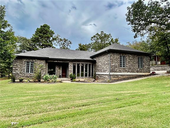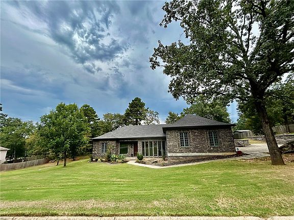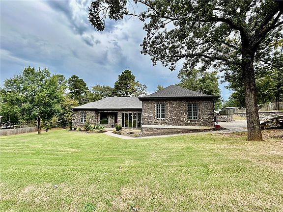 Discover superb craftsmanship in this stunning 3 bedroom, 2 bath home located at 12 Live Oak Ln Russellville. From the moment you enter you'll notice the extraordinary attention to detail, starting with soaring 11-foot ceilings accented by handcrafted wooden beams throughout the main living area. Every cabinet, door, and even the fireplace mantel was custom made by a highly skilled cabinet craftsman, setting this home apart from the rest. Real stone flooring flows throughout most of the home, with cozy carpet in the bedrooms and basement. Modern convenience includes a central vacuum system, security system, and French drains, seamless gutters, and 2.5'thick Belgrade pavers on driveway, back patio, and front walkway provides timeless curb appeal. This one-of-a-kind home blends superior quality with comfort and functionality, offering a rare opportunity to own a property where no detail has been overlooked. This Custom-built, is truly a must see! superior workmanship shows in every detail, perfect for sharing.