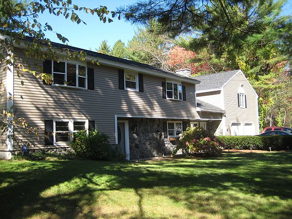 Stunning Windham NH Contemporary home for sale. 5 full bedrooms and 3 full bathrooms and a 2 car heated garage. Home features several expansive living areas, a gourmet kitchen with newer energy efficient stainless steel appliances, beautiful hard wood floors throughout, custom mudroom with spiral staircase and loft area, master bedroom with custom walk in closet, dual vanities, dual stone fireplace, and a 4 person hot tub. Additional features include central air conditioning, newer furnace, security system, 1.02 acres of land, 20x40 in ground swimming pool with pool house and large basketball court, large expansive deck with slider off dining room. Recent updates include vinyl siding, new roof with architectural shingles, new insulation, new windows, new front doors and insulated garage doors, new deluxe pool liner all done in 2008. Home also features a possible inlaw set up with a separate second full kitchen. Home is located in prestigious Windham NH in the center of town in a very quiet area and located very close to all of Windham’s top rated schools. Home is also appx. 1 mile from cobbets pond with beach access and a 5 minute drive to I-93, only 35 miles from Boston and 8 miles from the Massachusetts border! Home is listed by owner, brokers/realtors can contact us but we are not willing to list with a broker/realtor at this time.