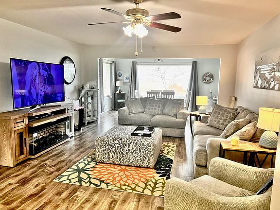 This relaxing two bedroom one bath condo is in a cozy spot nestled down by the lake in downtown Branson. Minutes away from Branson Landing, Lake Taneycomo and historic downtown Branson. With access to pickle ball courts and basketball courts. This condo boasts beautiful laminate flooring, ceiling fans, smart thermostat, attic storage, professionally painted doors, wall and trim and a washer and dryer. Enjoy a morning walk in one of the few flat neighborhoods in town! Or simply a cup of coffee on either patio enjoying nature. Don't forget the fishing trips at the community doc or enjoying a sunny day at the community pool. Truly the coziest place in town, close to everything you need and more!