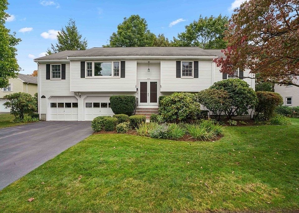 Fabulous home in Sunita Williams School district. Spacious and bright bright split-entry home is perfect for gathering and entertaining inside and out. Large LR with cathedral ceiling and classic DR welcome you on the main level. The updated eat-in kitchen with granite and SS makes cooking a pleasure. Off the kitchen is a large deck made for barbequing while overlooking the private fenced yard. Watch a movie or read by the cozy fire in the warm, inviting family room. Down the hallway are 3 bedrooms and 2 baths. Large family bath is accessible to the 2 bedrooms, and a lovely master suite with updated bath complete this level. Downstairs offers bonus space with an oversized playroom, 4th bedroom or office, full bath & laundry. The property is beautifully maintained with trees, grass and plantings. Large direct entry 2 car garage offers convenience and more space for storage. Close to Needham Center's shops, restaurants, commuter rail and library.