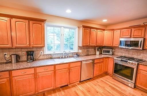 Gleaming hardwood floors and fresh paint welcome you upon entering this fabulous 10 room, 4 bedroom, 3 ½ bath Colonial on a lovely tree lined Street. Move right into this Gorgeous professionally landscaped yard with beautiful plantings. Formal living room and dining room with fine architectural detail and moulding. Great open kitchen and family room with fireplace, skylight, and vaulted family room. Great office, high ceilings and hardwood floors. Four spacious bedrooms including cathedral ceiling master bedroom with en-suite and adjoining office and Palladian window. Lower level family room full bath and fitness room. Extra-long 1 car garage. 2016 new roof. Conveniently located near route 9. Truly a beautiful home. The home is now empty.