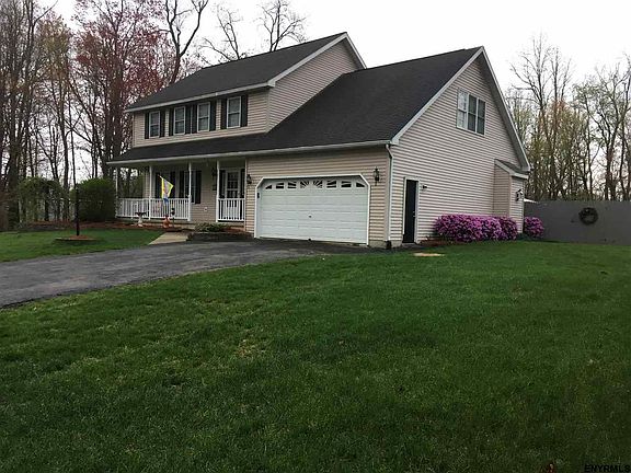 Clean & bright 4BR, 2.5 bath colonial, built 2001, w/ tilt-in vinyl windows, hardwood DR floor, sunny kitchen & open fam room w/ brick gas fp hearth, fresh paint t/o. 2 minutes to N'way in either direction! Shen schools, Ballston Lake address. Unusual access to large backyard for RV's, boat storage, trucks or trailiers, deep backyard. Nicely fenced dog area out slider, adjacent to 1000 sq ft paver patio, w/ awning over bluestone stoop. Front sitting porch on low-traffic street. Shelf storage+xtra BR below