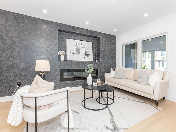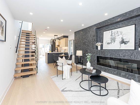 Welcome to 12 Marigold, a true custom home in South Riverdale where modern design meets everyday comfort. Natural light pours in through the skylight, brightening an open main floor anchored by a sleek fireplace and a striking mono stringer staircase with glass railings. The kitchen and bar are designed to impress, pairing style with function to make daily living and entertaining effortless. Upstairs, calm and inviting bedrooms are complemented by a spa-like ensuite with heated floors, while the lower level stands out with soaring ceilings, a custom bar with wine fridge, built-in speakers, and elegant wall paneling. The details continue beyond the living spaces: an electric heated porch with custom cabinetry, engineered hardwood throughout, and a seamless flow that ties every room together. Step outside to a private urban retreat with a large deck, 10-foot privacy fencing, interlocked yard, and a refined stucco exterior. At the laneway, a garage with roll-up door and built-in EV charging adds convenience for modern living. Every corner of this home reflects thoughtful design and lasting quality, offering both elegance and comfort in one of Toronto's most sought after neighbourhoods.