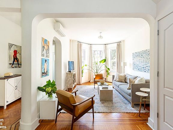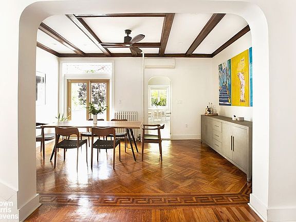 12 Martense Court, a tranquil oasis in the heart of the city, is a perfect blend of modern elegance and classic charm. This pre-war townhouse nestled on a lovely and lush cul-de-sac court in vibrant Flatbush offers a generous 2,400 square feet over three floors of exceptionally designed space. On the upper levels there are three gracious bedrooms, 2.5 beautifully updated bathrooms, a chef's kitchen and separate dining room. Original pre-war details abound including: archways, beamed high ceilings, bordered parquet oak hardwoods and marble flooring, crown moldings and a lovely fireplace. Three exposures and two skylights flood your home with excellent natural light. The modern, windowed chef's kitchen with breakfast area stands out with its sleek design featuring a suite of Viking appliances, custom cabinetry and quartz countertops. Enjoy hosting in the large formal dining room or spill out on your outdoor deck and landscaped garden. Additional flex spaces include: an at home office, media room, home gym, laundry area, mud room, and two utility rooms all with radiant flooring. A highly efficient split system HVAC keeps you comfortable year round. Situated in the heart of Flatbush and very close to Prospect Park, acclaimed dining, and shopping, this is an ideal location for your weekend escapades or leisurely strolls. Contact us today to schedule a private showing and see what makes this townhouse such a remarkable find in stylish and trendy Flatbush!