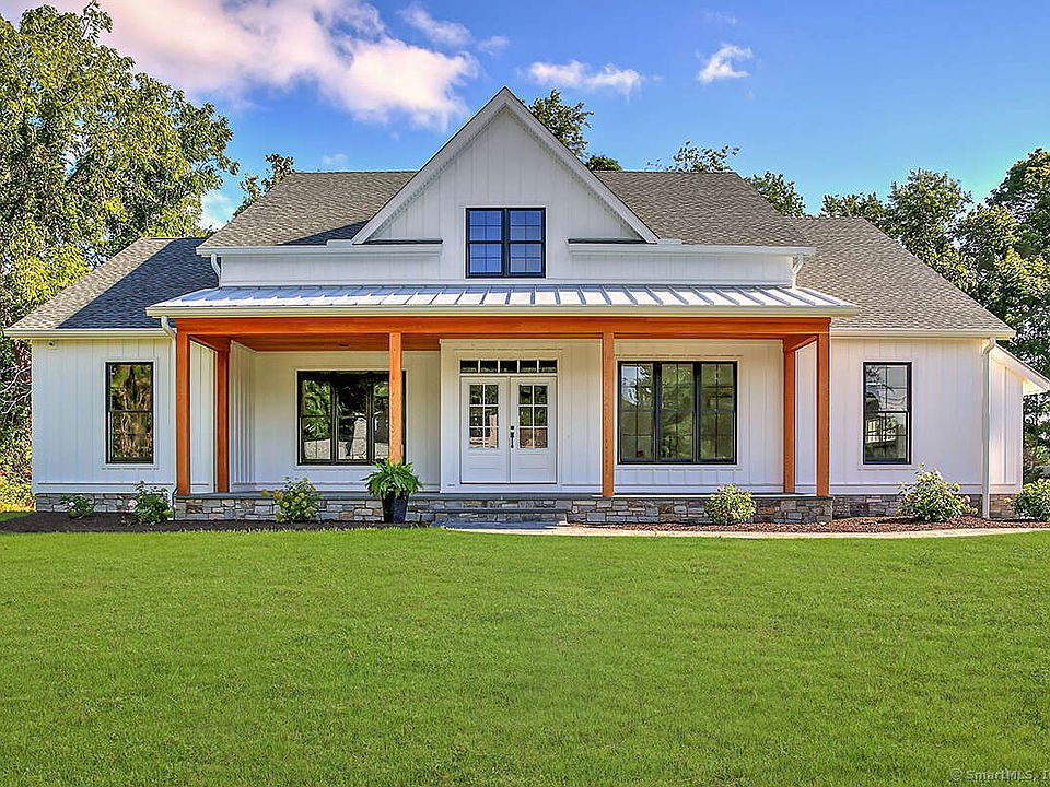 Quality built! Stunning New Construction being built in a Two-Cul-de-Sac Subdivision. This brand-new Modern Farmhouse combines timeless curb appeal with today's most desirable features. Designed with symmetry and character in mind, the exterior showcases a welcoming covered front porch, a central gable, and expansive multi-panel windows that flood the home with natural light. Step inside to a vaulted family room with exposed beams and cozy fireplace. Open dining area, and a chef's kitchen features a large center island with seating, a walk-in pantry, and oversized sliders leading to the spacious 24x14 rear covered porch, perfect for outdoor dining. The thoughtful split-bedroom layout provides privacy for the luxurious owner's suite with private porch access, a spa-inspired bath, and a generous walk-in closet. Two additional bedrooms on the main level share a stylish full bath with dual sinks. Mudroom, laundry room with utility sink, and powder bath add to everyday convenience. Upper level (with own heat exchange) expands your living possibilities, offering a loft, bedroom, full bath and walk-in storage. Additional highlights include: Three-car garage with natural light and direct mudroom access. This home features a full walk-out basement perfect for a home gym or office. Located in the center of Litchfield County, Goshen is the home of Sunset Meadow Vineyards, Action Wildlife Foundation, The Goshen Fair, Ivy Mt Park, and many nearby restaurants 2.5 hours to NYC, 2.5 hours to Boston, 2 hours to the Catskills 1-year CT Builder warranty