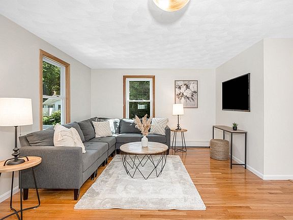 OPEN HOUSE 9/1, 11AM-12:30PM, EASY TO SHOW THROUGH SHOWING TIME ALL WEEKEND! Take a look at this terrific colonial with inviting farmer's porch perfectly situated on a quiet dead-end street just minutes from the highway and MBTA commuter rail. The first floor features warm oak flooring, a "front to back" living room, sunny white kitchen with adjacent dining and sun rooms and a renovated bathroom and laundry area. The second floor is highlighted by an updated full bath, ample closet space, and a serene primary bedroom with a large walk-in closet. You'll find a home office on the third floor and another partially finished room that can be finished to suit your needs. The versatile "walk out" lower level has a comfortable and spacious family room and more storage! Move in just in time to enjoy the oversized heated salt water pool surrounded by a level fenced in yard! GAS heat and TOWN Sewer and owned solar panels offer abundant savings!