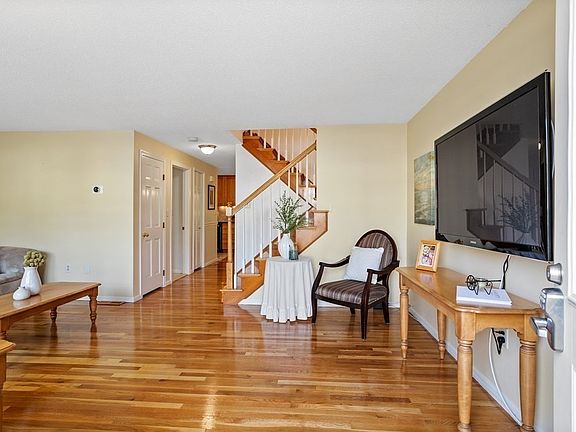 Townhome + Garage! in Merrimack Meadows. Well maintained end unit is nicely updated. This home offers a bright first floor with modern kitchen incl granite counters, tile backsplash, updated appliances and quality cabinetry. Great size living room with hardwood floors, along with a half bath on first floor with laundry. The 2nd floor offers 1 large bedroom with fireplace and 2nd bedroom or potential office. A spacious full bath incl corner spa tub & steam shower completes 2nd floor. The 3rd floor main bedroom suite has a fireplace, dressing area/open closet, private bath with skylight and lots of closet space. 2 heating and cooling zones including 1 for 3rd level. In the basement is finished space for a family room, the storage/utility room incl new heating system (2022) and 2 hot water heaters! New paint in many rooms, all light fixtures have been updated. New roof was installed in 2018. The 2 TV's & refrig in basement stay. OH Sat & Sun 7/22 & 23 11AM to 1PM.