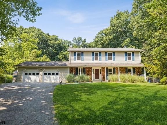 Serene oasis in your own backyard! 2 acre plush level lot, backs to woods. Spacious deck overlooking in-ground pool. Located at the end of a cul de sac! Enjoy breakfast on your private covered porch. Lake community activities or just jump in your pool. Farmhouse Colonial offers new bamboo flooring on main living level. Formal living rm opens to formal dining rm. Kitchen is centrally located off the family rm & offers wood burning fireplace. 1st floor laundry rm, mud/utility rm & powder rm. 2nd level boasts spacious master bedrm, 2 double closets, dressing station, full bath. 3 additional bedrms all with ceiling fans & wall to wall carpet. Updated guest bath with private water closet. Bring your plans to this open unfinished walk-out basement. Quiet location, bike, hike & stroll to town location. 1hr NYC