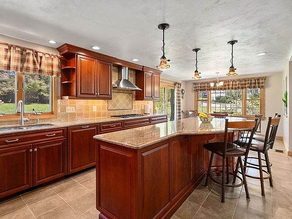 Quality abounds in this Custom Crafted Gambrel. Tile entry leads to office. Family room /hardwoods~picture window new slider that leads to exterior composite deck. FF laundry, Half bath on first level. Formal dining room/hardwoods. Upgraded kitchen~cherry cabinets, highend appliances, granite countertops,ss fan. Built in oven and micro. Eating area with a slider that exits to another rear deck. Living room /with fireplace and woodstove insert. and hardwoods. Beautiful solid 6 panel wood doors and wood trim are throughout this home. The upper level has 4 spacious bedrooms, and a sitting area or second office. Additional second full bath. Young roof and some newer Anderson windows. Double gas furnaces, Central Air 2 Zone. This home sits on a beautiful corner lot in a well established subdivision with beautiful stone walls. Close to schools and Tennis courts and Medical facility and Churches. Pride of ownership is truly displayed in this beautiful home