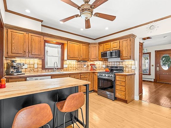 - Features: Ceiling Fan(s), Flooring - Hardwood, Dining Area, Cabinets - Upgraded, Exterior Access, Open Floorplan, Gas Stove, Lighting - Overhead, Crown Molding