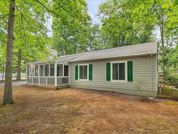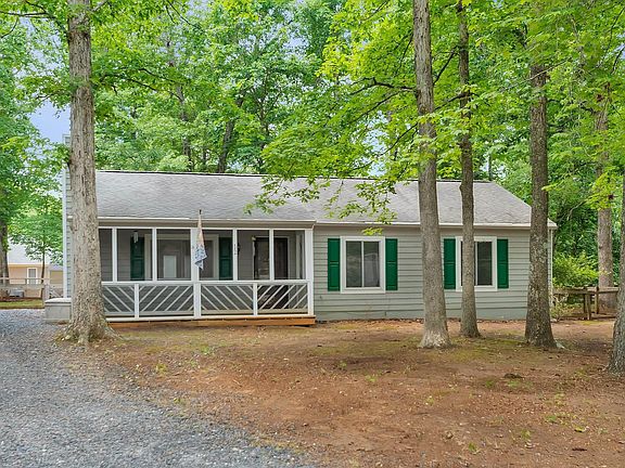 Adorable one level home in golf course section of Lake Monticello. Enjoy your morning coffee on the screened in front porch. If you're looking for a home with no steps this is the home for you. 3 generous sized bedrooms and 2 full bathrooms. Bright family room with vaulted ceilings that connects to the dining area, kitchen and laundry. Updated stainless steel appliances. Fresh paint inside, no carpet, updated bathrooms. Exterior was painted 2 years ago. Enjoy entertaining on the rear deck that looks into the fenced in flat back yard.