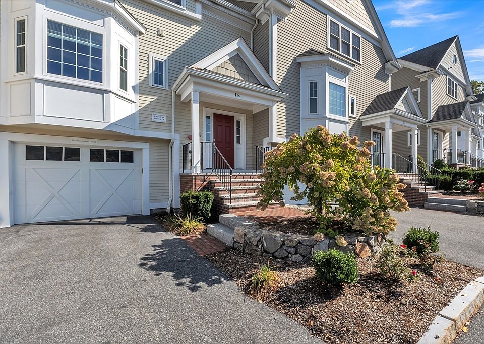 12 Murray Ave #18 – 3-Bedroom, 3.5-Bath TownhouseBeautifully maintained townhouse with 2,114 sq. ft. of living space across three levels. Move-in ready and newly painted, built in 2014 with an open-concept layout, hardwood floors, 9-foot ceilings, and a gas fireplace. The upscale kitchen features granite countertops, stainless steel appliances, and ample cabinetry, flowing into dining and living areas with access to a private deck. The primary suite features a walk-in closet and a spa-like bath with a double vanity, tiled shower, and a jetted tub. A third-floor loft with vaulted ceilings and a full bath offers versatility as a bedroom, office, or bonus space. The unfinished lower level connects to the rare 2-space garage. Additional highlights include central A/C, abundant storage, and a professionally managed, 100% owner-occupied association. Located near shopping, dining, fitness centers, public transit, and major routes, this townhouse combines luxury, space, and convenience!