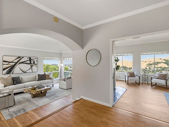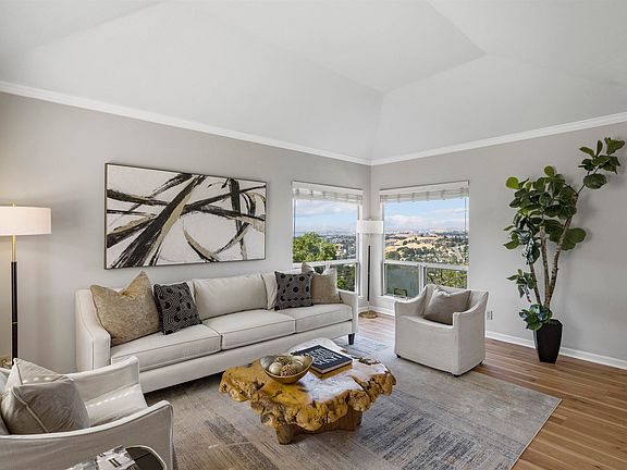 Seriously, picture this: living on top of the world at 12 N Rancho Ct! This dream home in a gated spot has jaw-dropping, sweeping views from almost every room – must see to believe. Nearly 3200 sq ft of bright, sunny, and super spacious modern living. Think elegant but comfy. Inside? Formal living/dining for when you're hosting, then it flows right into the kitchen and family room – perfect for everyday life. Oh, and a full bedroom/bath on the main floor with deck access to those killer views! Upstairs? Four big bedrooms, three baths, including a seriously luxurious master suite. Huge windows everywhere showing off those hill and city views. And the decks? Massive! Perfect for entertaining and eating outside. Plus, great design, a three-car garage, and tons of storage. This home is the ultimate living experience. Don't even think about missing this chance at a real dream home!