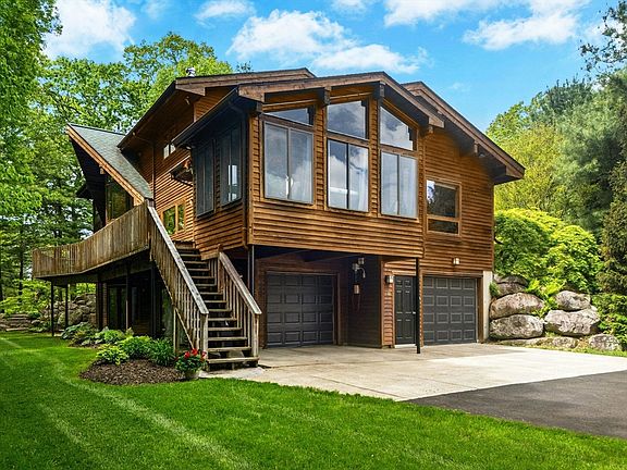 Welcome to this custom-built Lindal Cedar Post & Beam home—an architectural gem, seamlessly blending timeless craftsmanship w/soaring ceilings, rich wood finishes & abundance of natural light inviting the outdoors in. Nestled on 2 private acres at the end of a cul-de-sac, the home offers breathtaking sunsets over the pond & the serene beauty of natural wildlife. Professionally designed walkways, mature trees & perennial gardens create an unmatched setting. Updated, sun-splashed kitchen has SS appliances, a Sub-Zero refrigerator & flows into a DR, screened porch & two versatile office/play rooms. On chilly evenings, gather around the stunning stone fireplace w/a Better 'N' Bens wood stove. Pristine hardwood floors run throughout & the expansive primary suite includes a beautifully updated spa-like bath. Finished walkout basement provides flexible space for a media room, gym, or 2nd family room. Located minutes to town center & commuter train, this home offers privacy & timeless design.