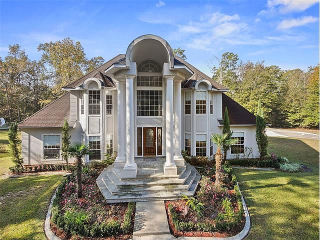 Home of TRUE ELEGANCE situated in an enchanting neighborhood of Oak Grove Estates! Upstairs-master bedroom and 2 bedrooms. Downstairs-1 bedroom plus hobby room. 3 full baths. Study features custom cherry bookcase. Game room with wet bar. Wrap around fireplace from great room to game room. Spacious California closet in master suite. Lovely, cherry hardwood floors throughout. Enclosed swimming pool including hot tub, slide on 1 acre lot. Original owners. North of I-12-no flooding. Termite contract included.