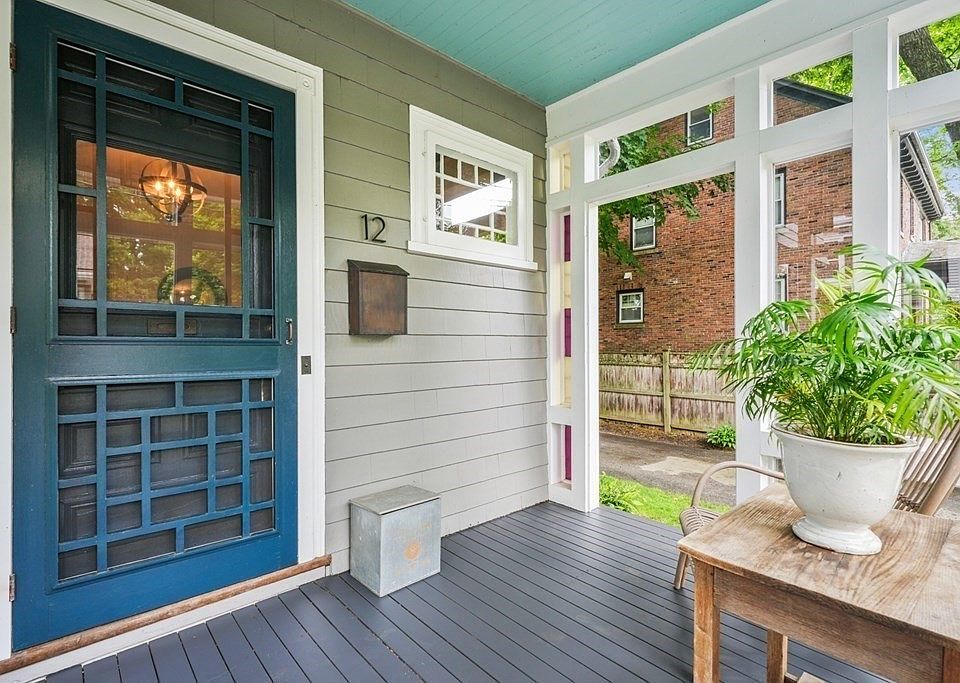 He who plants a tree, plants a hope. So what could be more hopeful than discovering 12 Oak Road set on one of Miltons mighty tree streets under a canopy of powerful oaks? The front porch portends something special with stained glass detail and a front door as solid as youd expect. The wide entry hall welcomes your crowd, the majestic newel post making a statement and setting the tone for what is to come. Beautiful hardwood floors and high ceilings stand out. Updated baths still retain some original charm. The open kitchen with dining nook is the hub of daily activity. A mudroom collects it all. 4 bedrooms include a nursery turned office. 3rd floor media room lets your people spread out. Those in the know love the detached heated clubhouse where movie night is king and late nights deep in reverie and friendship are long remembered. New roof, updated electrical, remodeled kitchen and baths, high style, and firmly rooted. Close to Steel & Rye, trolley. Beautiful in every season.