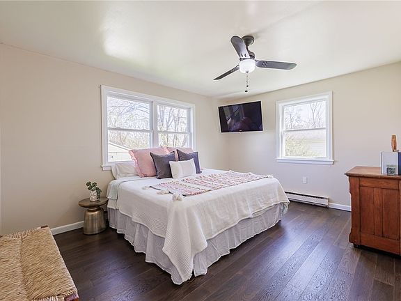 PRIME LOCATION in BLOOMFIELD right across the street from the Middle-High School! Walkable to some beloved local eateries, grocery and shops! This spacious ranch home has recently undergone an entire exterior transformation. NEW: Tear-off Roof, Soffit with recessed lighting, Facia (all new metal and wood), Exterior lighting, Seemless Gutters, Insulation in attic and garage, Energy Star Windows and Doors, AND NEW Vinyl Siding! Other recent upgrades include cement driveway, garage floor, back patio, LVP flooring, some new paint, replaced all fixtures switches and outlets and kitchen upgrades! New gas lines were run for the garage heater and gas stove, as well as plumbing updates to the first floor full bath. Garage is set up as year-round workshop, so bring your tools and equipment! The basement can literally DOUBLE your usable SQ FOOTAGE, with walkup exit, a full bathroom and rec room waiting for your customization. You will have complete peace of mind making this your first or next home! Beautiful flat backyard, and extra large shed with electric! Open House Sunday, April 28th 1-3PM! Don't miss your chance to call 12 Oakmount home! Offers will be reviewed as they are received!