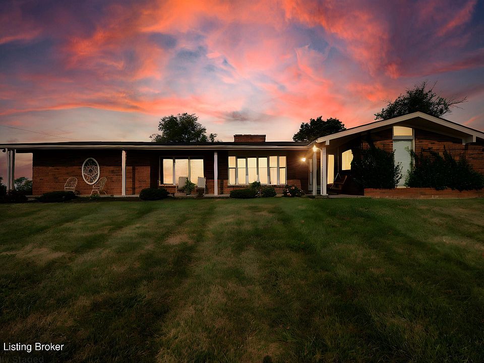Step into timeless style with this beautifully preserved mid-century modern brick ranch, offering the perfect blend of character, space, and functionality. Situated on an acre, this home showcases architectural details true to its era, including signature 4-foot roof overhangs and a striking sunken living room anchored by one of two brick fireplaces.