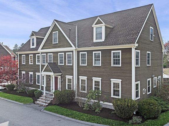 Desirable three story, end-unit townhouse. Convenient to town, schools, park, restaurants and commuter rail. The kitchen complete with a breakfast bar flows easily into the dining room. The dining room offers a slider to the deck & patio perfect for relaxing, gardening and grilling. Steps away the beautiful living room beckons with lots of natural light and a cozy gas fireplace. A half bath, laundry and large coat closet complete the first level. Upstairs is a primary suite with hardwood floors, its own bathroom, and a view over the fields behind the complex. The second bedroom, also with hardwood floors, has direct access to the guest bathroom. The third floor offers a large room with two walk-in closets, and a vaulted ceiling currently used as a bedroom, but also perfect as a family room or playroom. With 11 windows replaced in 2023, brand new built-in microwave, 2 parking spots, central air, and a private entrance this is the ideal place to make your next home!