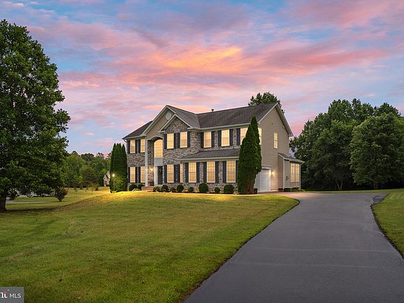 Welcome to 12 Orchard Ln located in the desirable community of Poplar Estates. Nestled on 3.02 private acres, this stunning 4 bedroom, 3.5 bath homes offers the perfect blend of space, comfort, and convenience. With three finished levels and an open concept floor plan, the home is designed for both everyday living and entertaining. The gourmet kitchen glows seamlessly into the family room and sunroom, where walls of windows fill the space with natural light and provide peaceful views of the backyard and tree-lined property. Upstairs, the spacious bedrooms include a luxurious primary suite with a sitting room, primary bath with shower, separate soaking tub, and two vanities. The lower level features a large rec room along with a full bath and large unfinished space, great for storage. Additional highlights include an oversized side-loading two car garage, an extended driveway with ample parking, and a quiet community setting. All of this, just minutes from I-95, commuter lots, the VRE, Quantico, shopping and dining. Updates include new flooring in the sunroom, new flooring and built ins in the family room, new backsplash, newer appliances in the kitchen, roof inspected 2 yrs ago and roof vents were replaced.