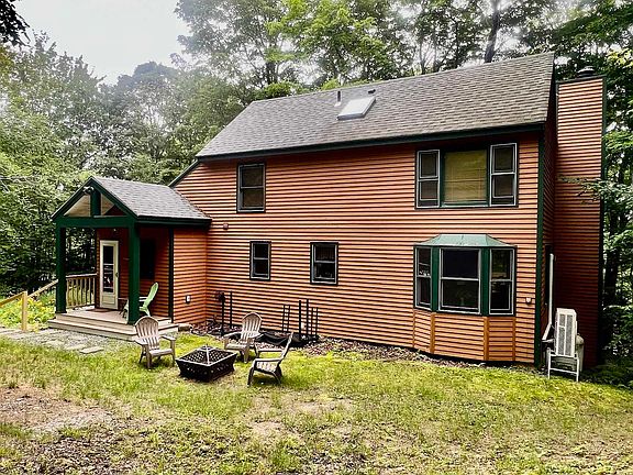 Desirable location with little traffic. Four bedroom, 2 bath home with fireplace in living room and wood stove in the nicely finished walk-out lower level. There are two decks. One has a hot tub overlooking the pond which is off the living room. The lower level deck provides cover for those rainy days. Upstairs bath has a skylight which provides an abundance of natural light. The newer mudroom has more than enough storage for everyone's skis, coats and boots. All of the bedrooms are good size with one able to accommodate 4 beds. Outside there is a fire pit for apres skiing and cooking smores.