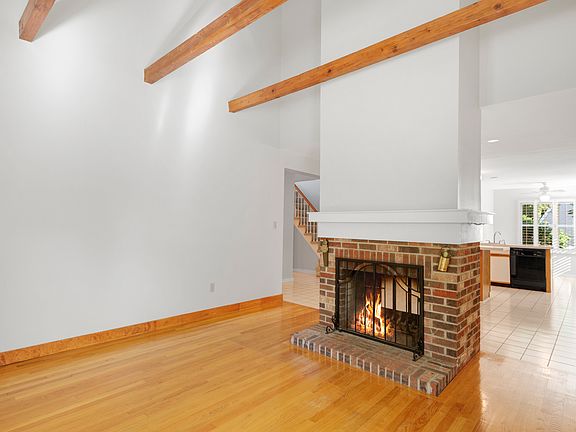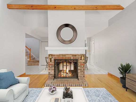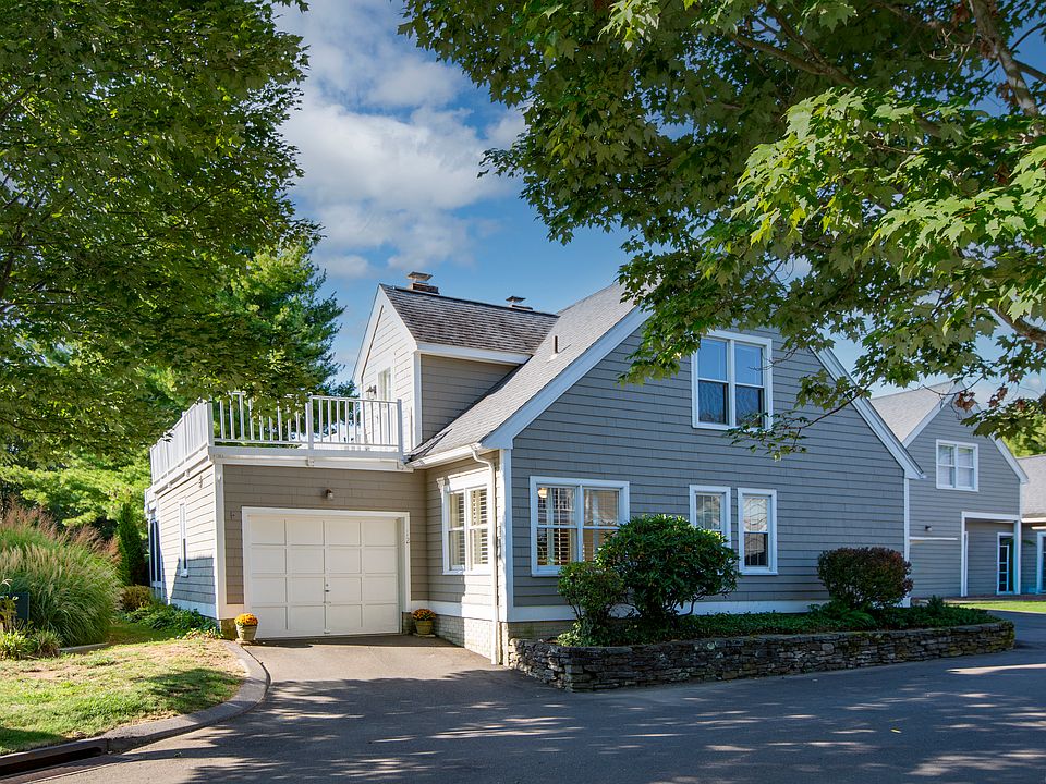 Rarely available unit in the Rollwood/Paddock Lane complex. This in-town community is ideally located just a few blocks from the town green, Jacobs beach, shopping, restaurants, library and train station. Right across from the fairgrounds where many community events and farmers markets are held. Pool and tennis/pickleball court on site. 12 Paddock Lane features bedroom suites on the main and second floors, a dramatic, spacious living room with vaulted ceilings, wood beams, a double-sided wood-burning fireplace, and custom plantation style shutters. The screened porch off the living room offers peaceful views back to a small pond. An open eat-in kitchen and dining room give space for two seating areas and views of the fireplace. The main floor bedroom with en suite bathroom is nicely separated from the living areas and newly carpeted. The upper-level bedroom has double closets, an en suite bathroom, and access to a large deck area. Freshly painted interior, natural gas heating/air conditioning, public water, and attached garage.